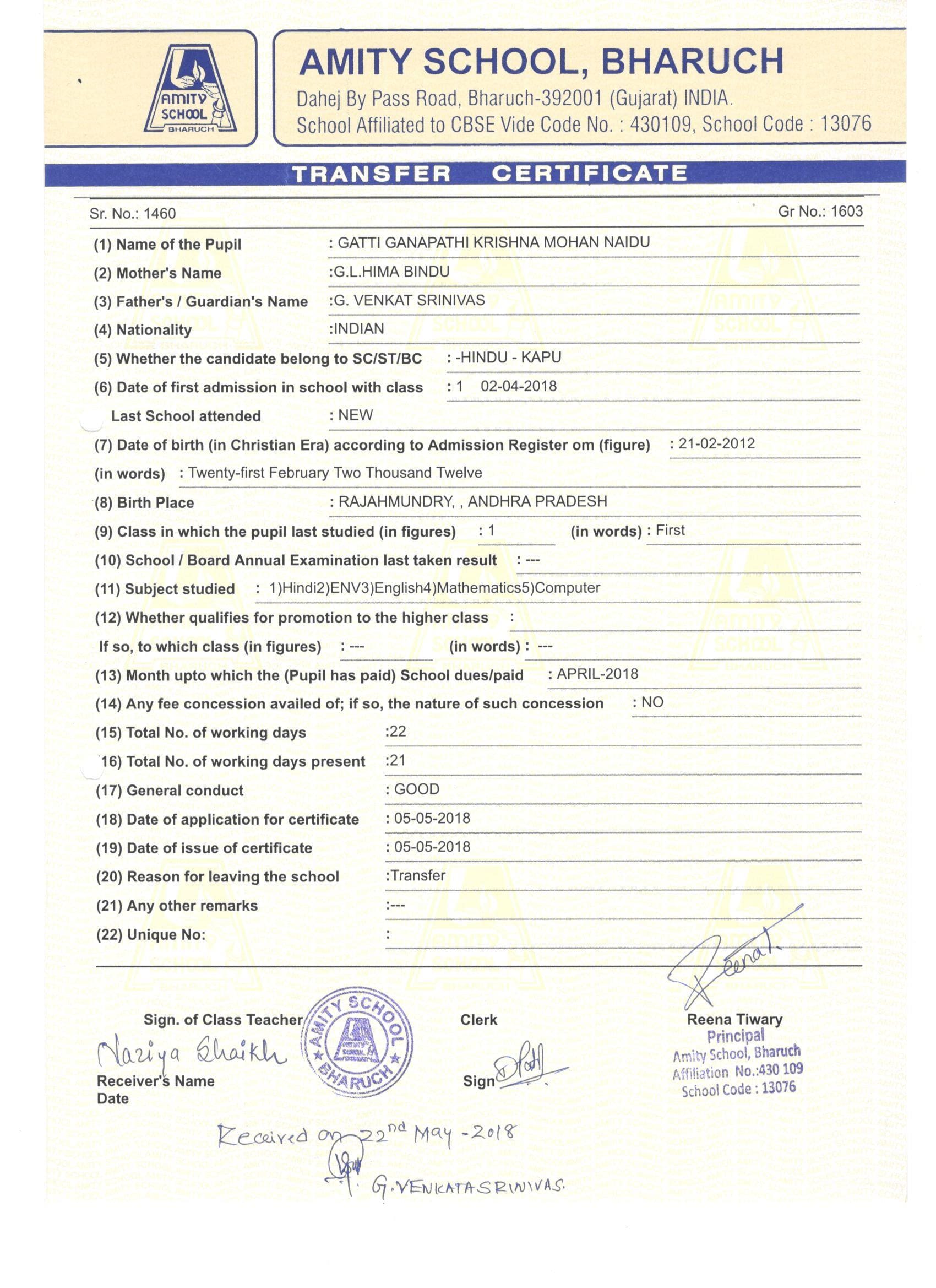 | GATTI GANAPATHI KRISN MOHAN NAIDU G.VENKAT SRINIVAS G | 1 | Leaving Certificate |
